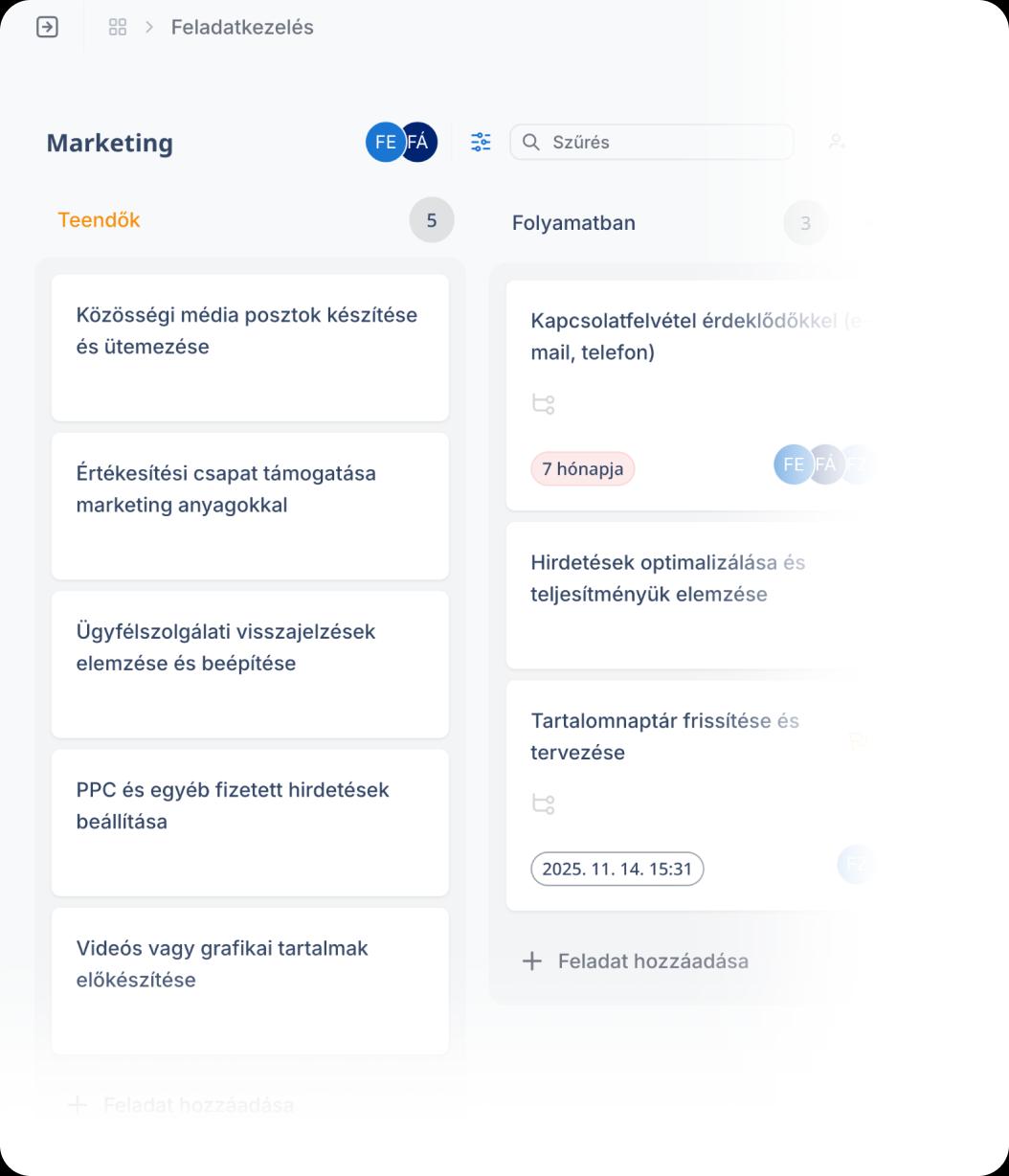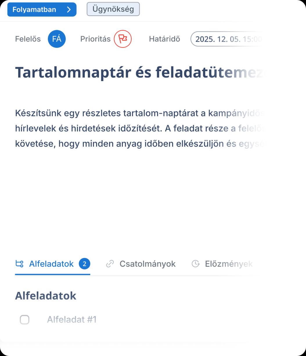 Egyetlen tér, ahol a feladatok, határidők, státuszok és visszajelzések egyszerre láthatóak,