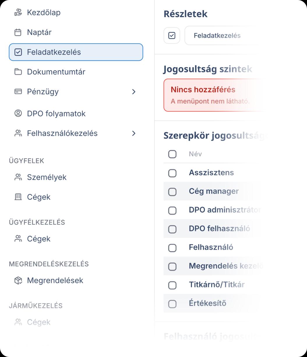 Szerepkör alapú hozzáférés: mindenki a saját jogosultságának megfelelően dolgozik, minden adat biztonságban van