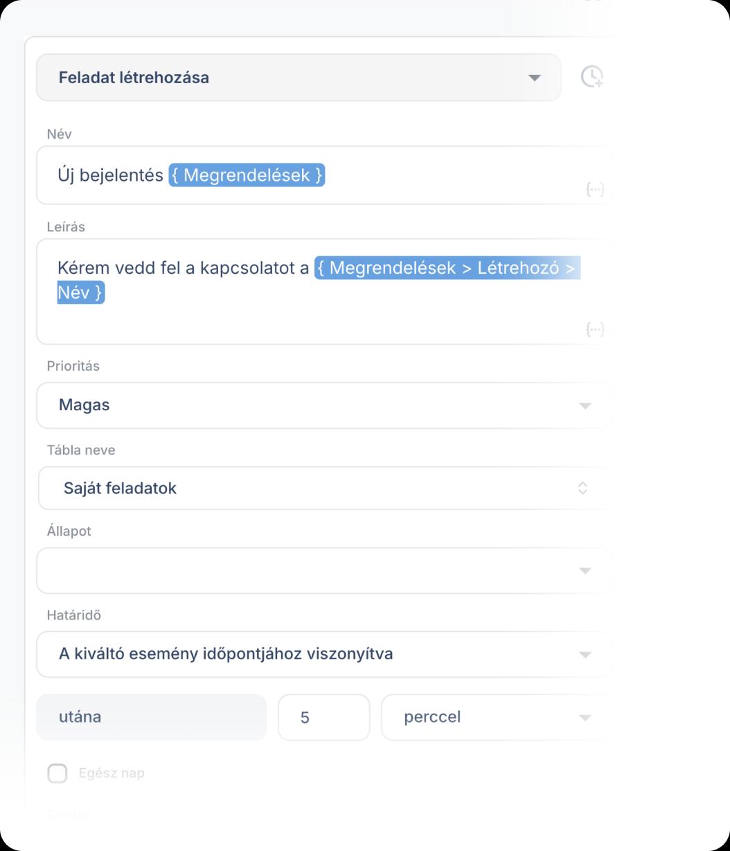 A rendszer automatikusan státuszt vált és feladatot hoz létre